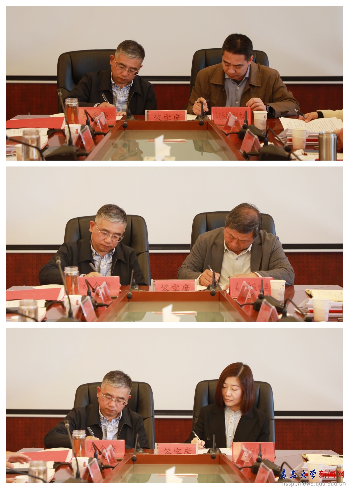 會(huì)上,胡金焱代表校黨委與馬克思主義學(xué)院黨委、美術(shù)學(xué)院黨委、國(guó)際教育學(xué)院黨委主要負(fù)責(zé)人簽訂了《意識(shí)形態(tài)工作責(zé)任書(shū)》,并為獲得宣傳思想文化工作先進(jìn)單位榮譽(yù)稱號(hào)的代表頒獎(jiǎng)。黨委常委、副校長(zhǎng)李軍宣讀有關(guān)表彰決定。黨委常委、宣傳部部長(zhǎng)吳世珍領(lǐng)學(xué)習(xí)近平文化思想相關(guān)內(nèi)容,傳達(dá)全國(guó)、全省宣傳部長(zhǎng)會(huì)議精神,部署2024年宣傳思想文化重點(diǎn)工作。