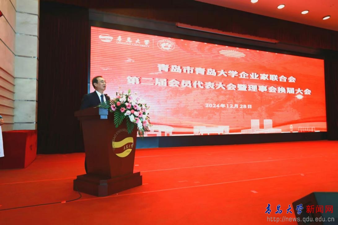 劉恩賢在致辭中指出,校友企業家作為傳承青大精神和弘揚企業家精神的代表,是推進母校事業發展的重要力量,也是母校社會影響力的重要表現。他介紹了學校的發展成就,他希望企業家聯合會加大工作運行的“力度”和拓展校地企合作的“深度”,充分發揮優秀校友企業家的信息優勢、平臺優勢和資源優勢,打造校友企業家互助共進的生態圈,助推產業鏈、創新鏈、教育鏈、人才鏈的深度融合,打造“新時代校友經濟”的新形態,搶占發展賽道的新藍海,在青島經濟社會發展中建功立業,在實現中華民族偉大復興中國夢的實踐中傳承青大精神、唱響青大聲音、做出青大貢獻。