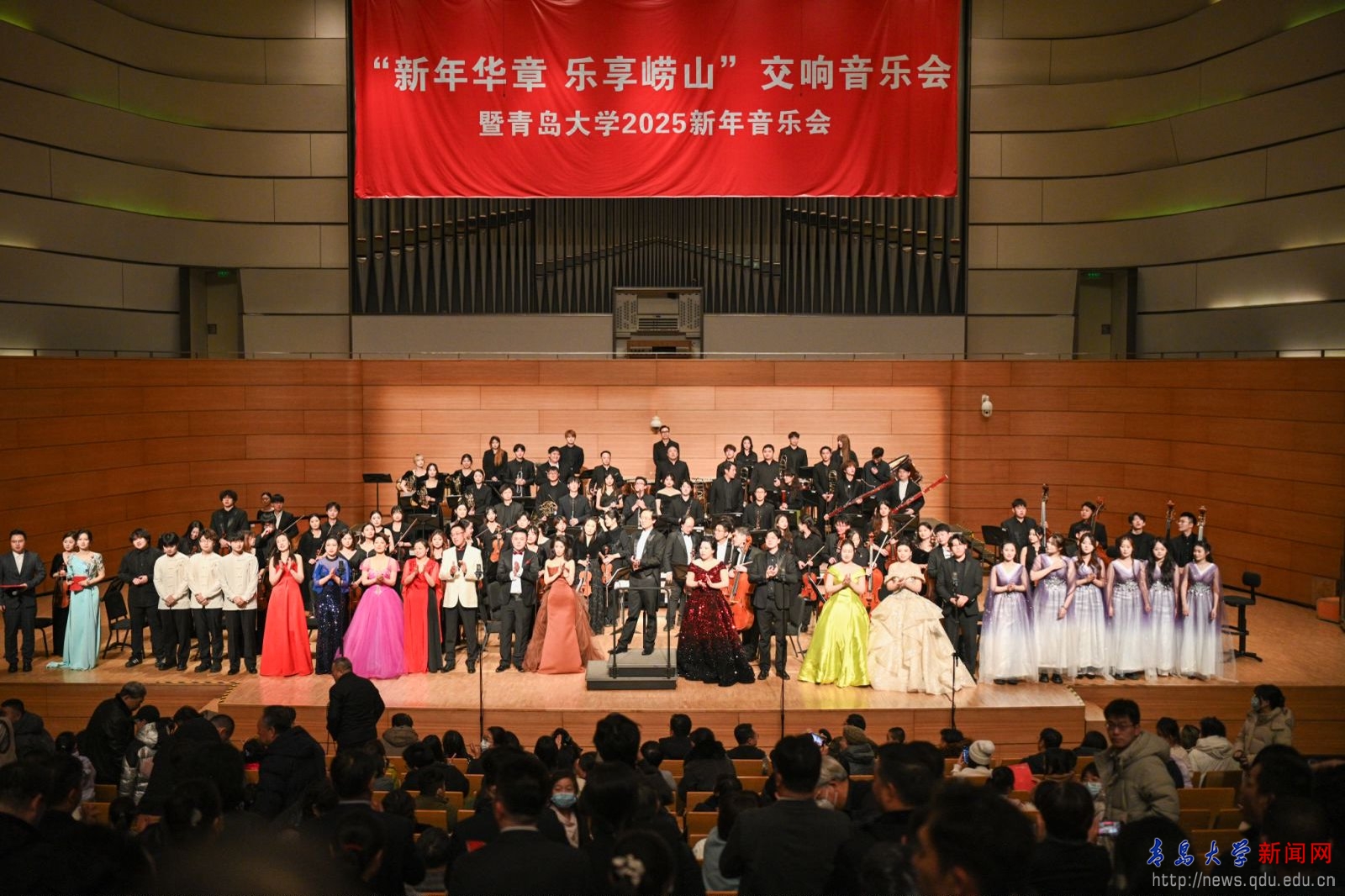 新聞網訊 歲序更替,華章日新。1月2日晚,“新年華章 樂享嶗山”交響音樂會暨青島大學2025新年音樂會在在青島大劇院精彩上演。校領導胡金焱、魏志強、肖江南、胡欽曉、何燕、李軍、吳世珍以及來自政府、合作企業、兄弟院校、附屬學校等的各界客人與學校師生醫務員工和校友一起,共賞音樂盛會。青島大學交響樂團和合唱團,藝術學院聲樂專業、民樂專業的教師和學生們演繹了一首首中外經典曲目,為觀眾帶來一場精彩紛呈的視聽盛宴。