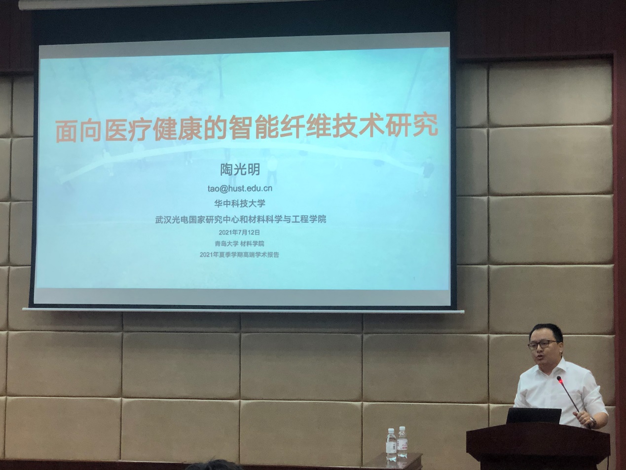 新聞網訊 7月12日上午,華中科技大學陶光明教授應邀來校作題為《面向醫療健康的智能纖維技術研究》的學術報告。