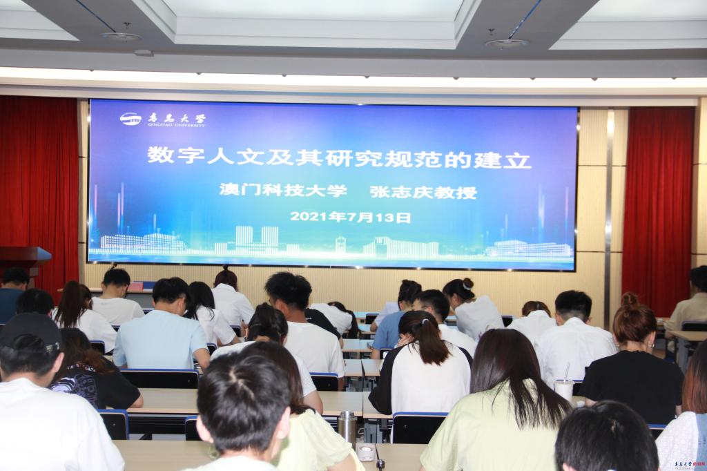 新聞網(wǎng)訊 7月13日,澳門科技大學(xué)人文藝術(shù)學(xué)院張志慶教授做客青島大學(xué),為我校師生做了題為《數(shù)字人文及其研究規(guī)范的建立》的學(xué)術(shù)報(bào)告。報(bào)告會由人文社科處鐘永光處長主持,黨委統(tǒng)戰(zhàn)部常務(wù)副部長、臺港澳事務(wù)辦公室主任王春光出席報(bào)告會。全校百余名師生參加了報(bào)告會。