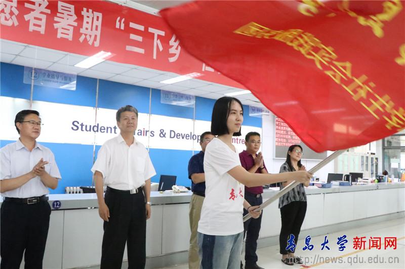 新聞網訊 7月4日下午,我校2018年大學生志愿者暑期“三下鄉”社會實踐活動出征儀式在學生事務與發展中心舉行。校黨委常委、副校長汪黎明出席儀式并為國家級重點實踐團隊授旗,學校相關部門負責同志、各團委負責同志以及志愿者代表參加活動。