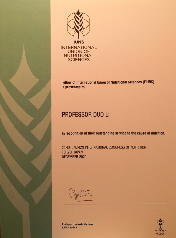我校李鐸教授當(dāng)選為國際營養(yǎng)科學(xué)聯(lián)合會院士