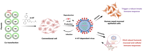 圖1. 4-HT依賴H1N1流感病毒的產(chǎn)生及誘發(fā)免疫反應(yīng)示意圖