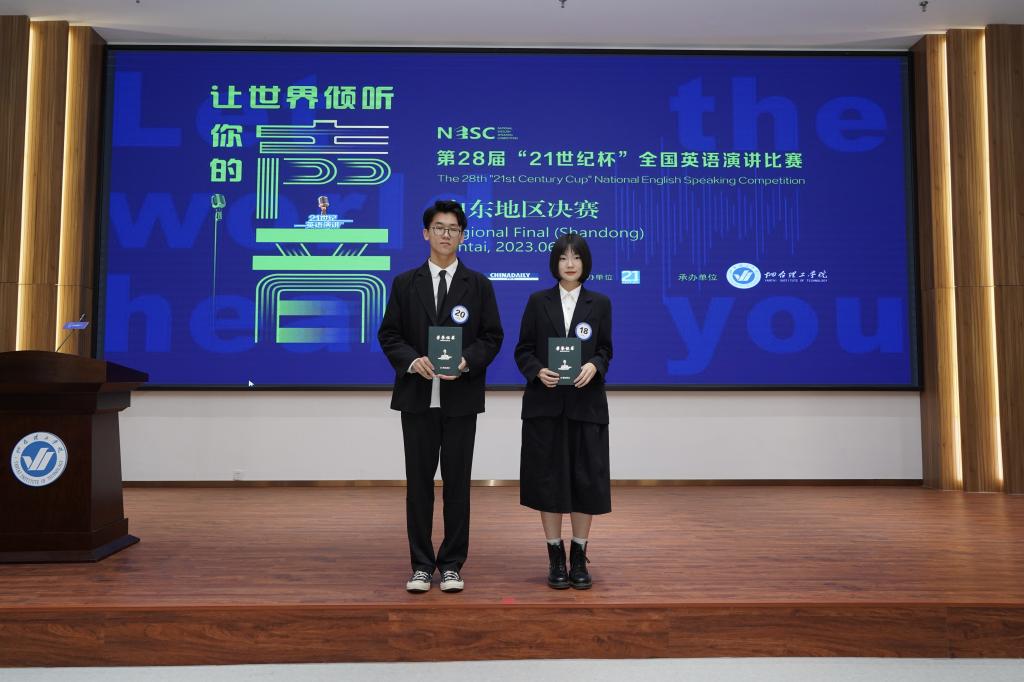 新聞網(wǎng)訊 6月2日,第28屆“21世紀(jì)杯”全國(guó)英語演講比賽山東地區(qū)決賽在煙臺(tái)圓滿結(jié)束。我校外語學(xué)院德語系、英語教育系學(xué)生王筱彤、于昊分獲本次比賽一等獎(jiǎng)和二等獎(jiǎng)。王筱彤同學(xué)將代表山東省參加全國(guó)半決賽。