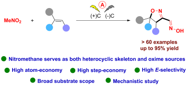 異噁唑啉是一類非常有用的五元雜環化合物,普遍存在于天然產物、藥物、農藥及功能分子中,開發綠色高效的異噁唑啉類化合物合成方法具有十分重要的意義。近些年,有機電合成作為一種綠色高效的合成方法,取得了迅猛的發展,并受到了越來越多的關注。