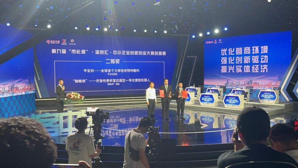 新聞網訊 9月13日,第九屆“市長杯”暨“創客中國”(青島賽區)大賽創客賽決賽成功舉辦。青島市委常委、副市長王波親臨頒獎。我校“腫瘤+”醫工研協同創新中心邢東明團隊的“平安扣:全球首個力學密閉特種敷料”、“蜘蛛俠:開放性骨折復位微型機器人開拓者”項目分列第二、第三名、獲二等獎,一并進入國賽,創造青島大學在“市長杯”大賽中的最佳成績,展現了青大醫工研協同創新的巨大潛力。