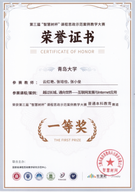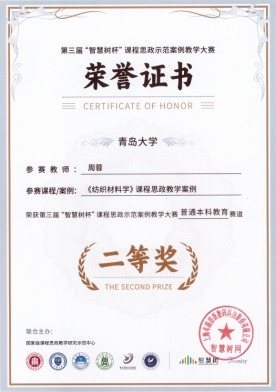 新聞網訊 近日,在第三屆全國“智慧樹杯”課程思政示范案例教學大賽中,經過初賽、復賽兩輪評選,我校教師云紅艷、張培儉、張小壘教師團隊的“越過長城、通向世界——互聯網發展與Internet應用”榮獲普通本科教育賽道一等獎;周蓉主講的《紡織材料學》課程思政教學案例榮獲普通本科教育賽道二等獎。這是我校近年積極開展課程思政建設,努力打造課程思政示范課所取得的又一個新成果。
