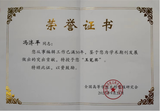 第七屆高校社科學術期刊質量檢查與評選活動旨在促進高校社科學術期刊高質量發展,加快提升學術期刊內容質量和傳播力影響力,檢閱會員辦刊成績,總結辦刊經驗,進一步探索人文社會科學學術期刊未來發展之路。此次期刊質量檢查與評估活動,根據期刊質量檢查與評估結果,將參評期刊分為“全國高校權威社科期刊”“全國高校精品社科期刊”“全國高校優秀社科期刊”“全國高校質量進步期刊”四個層次,前兩個層次的期刊將入編《全國高等學校人文社科核心期刊目錄》。此次質量檢查與評估活動全國共有1000余家高校文科學報參評,最終評出“全國高校權威社科期刊”95家、“全國高校精品社科期刊”120家。同時,本次評選活動還公布了編輯個人獎項,《東方論壇》副主編、資深編輯馮濟平老師榮獲“玉筆獎”。