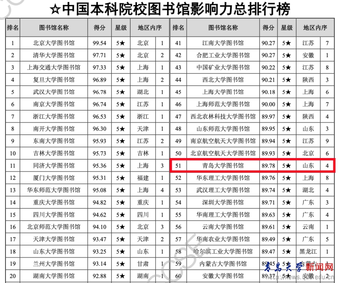 新聞網訊 近日,《數智時代中國圖書館影響力評價報告(2024)》正式發布,我校圖書館進入排名前10%具有突出影響力單位并獲評5星級,在中國1275所本科院校影響力排名中比去年提升22個位次、位列第51名,位列一般本科院校圖書館第4名,較去年提升4個位次。