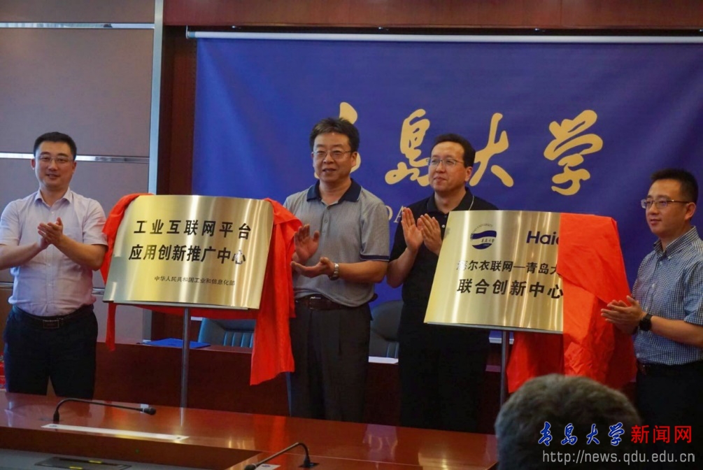 我校舉行海爾衣聯網、青島大學、青軟集團三方共建“海爾衣聯網-青島大學聯合創新中心”簽約儀式暨工信部“工業互聯網平臺應用創新推廣中心”揭牌儀式