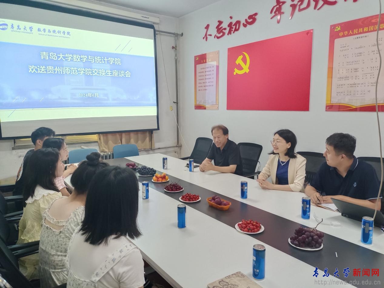 新聞網(wǎng)訊 6月28日下午,數(shù)學與統(tǒng)計學院在勵行樓218舉行歡送貴州師范學院交換生座談會。學院院長高紅偉、黨委副書記魏小平、輔導員楊藝、2021級學生代表及貴州師范學院交換生出席座談會。