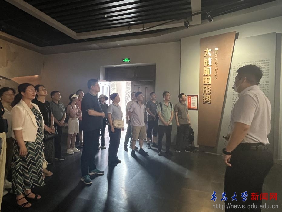 在棗莊市臺兒莊大戰紀念館和臺兒莊古城,教工黨員在講解員的帶領下,認真聆聽抗日先烈的英雄事跡,仔細端詳館藏資料影像和革命文物,過程生動再現了老一輩英雄在臺兒莊大戰中展現出的崇高革命精神和堅定斗爭精神。走進臺兒莊古城,在西門無名英雄遺骸發掘處悼念英魂,透過臺兒莊大戰遺址公園的彈孔墻感受當年激烈的戰爭場面。黨員們深切感受到戰爭歷史之凄壯和民族精神之堅韌。