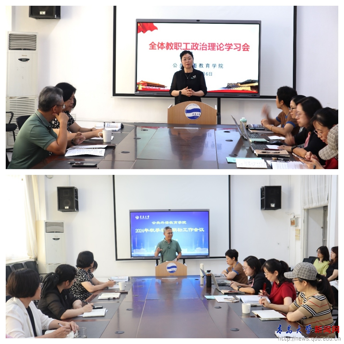 新聞網訊 9月6日上午,公共外語教育學院在睿思樓202會議室召開2024秋季學期期初工作會議暨教職工政治理論學習會,學院領導班子成員、各教研室主任及教師代表現場參會,會議由院長國林祥主持。
