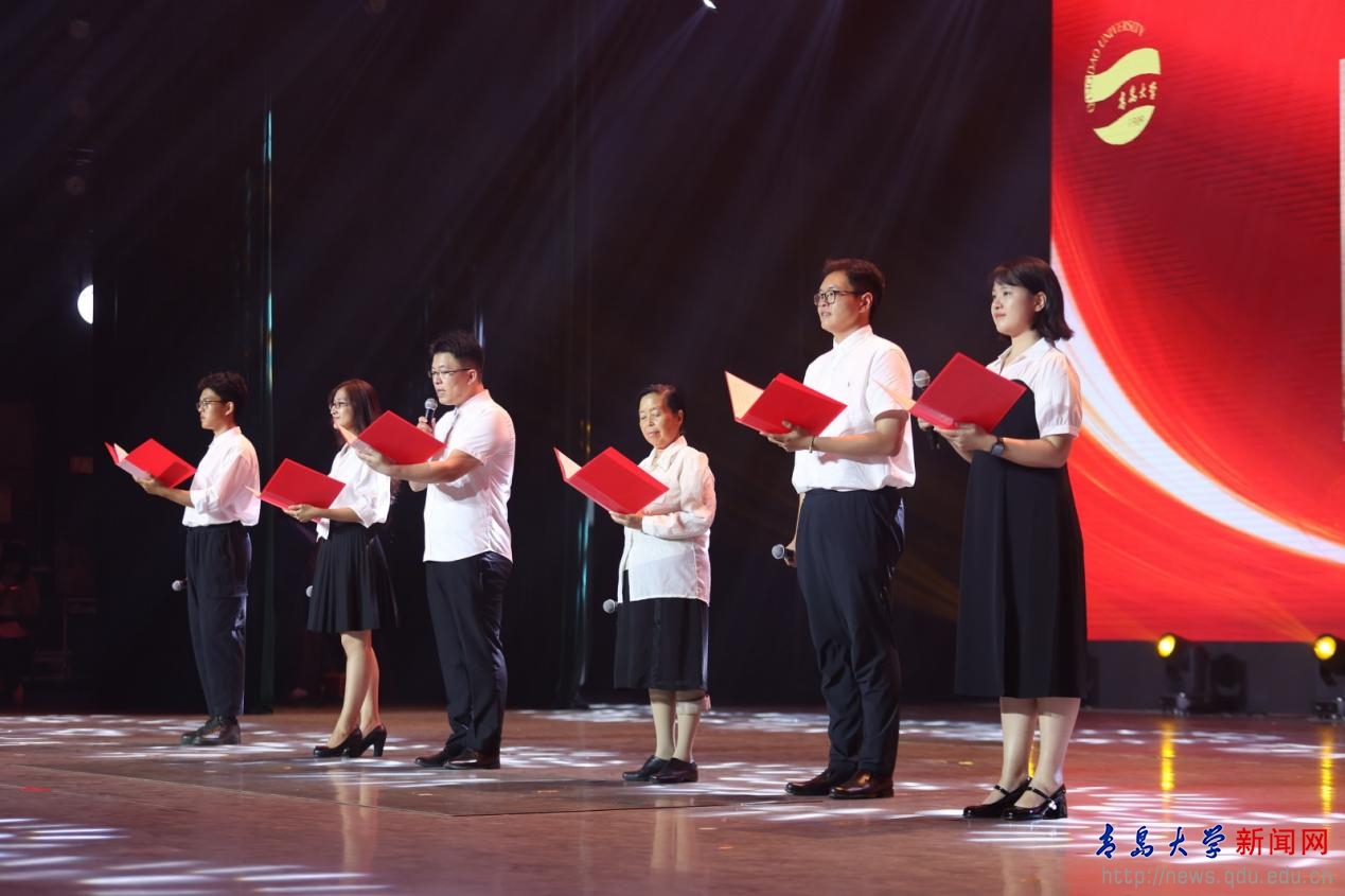 授袍儀式后,青島醫(yī)學(xué)院副院長(主持工作)任賀帶領(lǐng)全體新生宣讀《醫(yī)學(xué)生誓言》。誓言鏗鏘,在劇院里久久回蕩,激勵著在場的每一位同學(xué)。師生們還呈現(xiàn)了豐富精彩的歌舞節(jié)目。開學(xué)典禮在《我愛你中國》《青大之歌》的歌聲中落下帷幕。