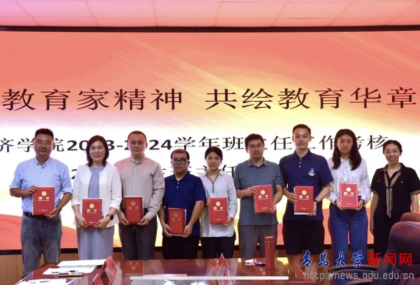 新聞網訊 9月29日,經濟學院2023—2024學年班主任工作考核暨2024級班主任聘任儀式在金家嶺校區三號實驗樓307舉行,經濟學院黨委副書記于文潔,全體輔導員和班主任出席會議,2023級輔導員薛羽彤主持會議。