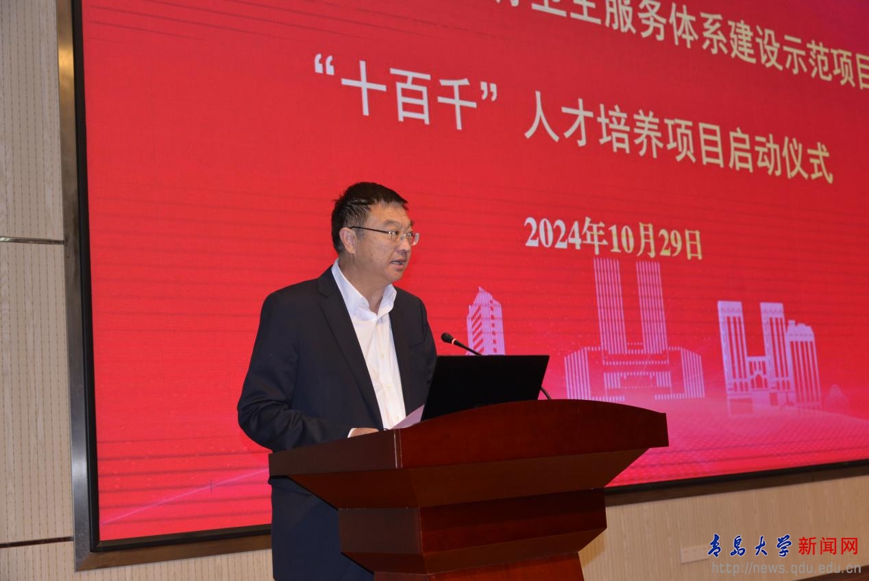 蔣光峰介紹了青島醫(yī)學(xué)院的基本情況。他表示,此次承接“十百千”人才培養(yǎng)項(xiàng)目是青島醫(yī)學(xué)院服務(wù)區(qū)域醫(yī)療衛(wèi)生事業(yè)的重要機(jī)遇,學(xué)院將整合優(yōu)秀的師資團(tuán)隊(duì)、教學(xué)資源、教學(xué)設(shè)施和臨床技術(shù),為學(xué)員提供全方位規(guī)范化的系統(tǒng)培訓(xùn),打造青醫(yī)培訓(xùn)品牌,創(chuàng)造基層醫(yī)療衛(wèi)生人才培訓(xùn)的新模式。他表示,期待青島醫(yī)學(xué)院能進(jìn)一步加強(qiáng)與青島市各級(jí)醫(yī)療衛(wèi)生系統(tǒng)的深度合作,承接更多的基層醫(yī)療衛(wèi)生人才培訓(xùn)任務(wù),為推進(jìn)青島醫(yī)療衛(wèi)生健康事業(yè)高質(zhì)量發(fā)展、為增進(jìn)島城人民的健康福祉作出更大的貢獻(xiàn)。