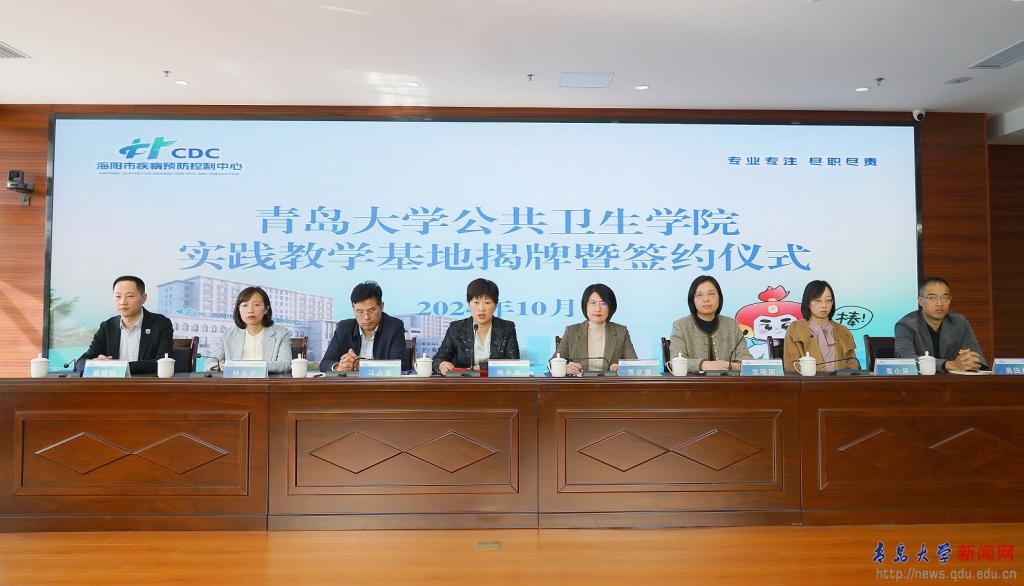 賈依娜在致辭中重點介紹了青島大學及公共衛生學院的發展歷程、教育教學、師資隊伍和學科建設等基本情況,并表示今后將與海陽市疾控中心攜手共進,共同探索公共衛生教學科研和人才培養新范式,為促進高校與地方的合作共贏創造新的機遇,產出更多惠及社會的成果。賈依娜與倪永妮一起,為教學實踐基地揭牌。